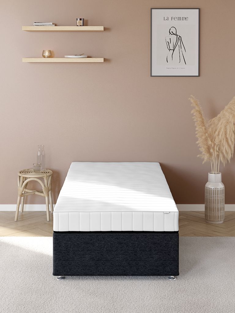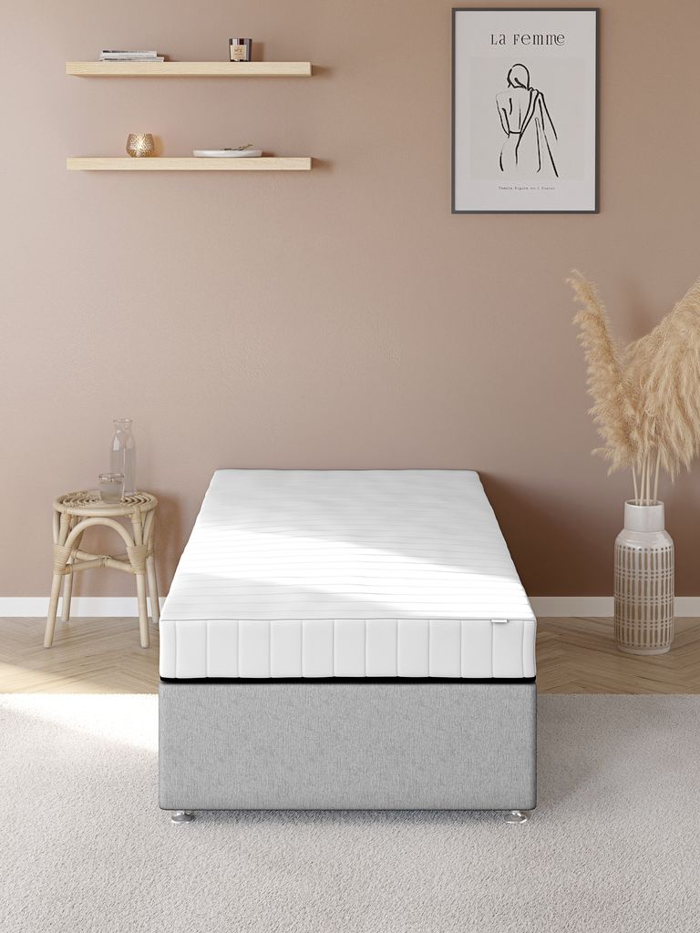16 cm deep mattress with Bonell springs 117/m², padded with polyether foam. Washable cover with a light quilting. Single 90x190 cm