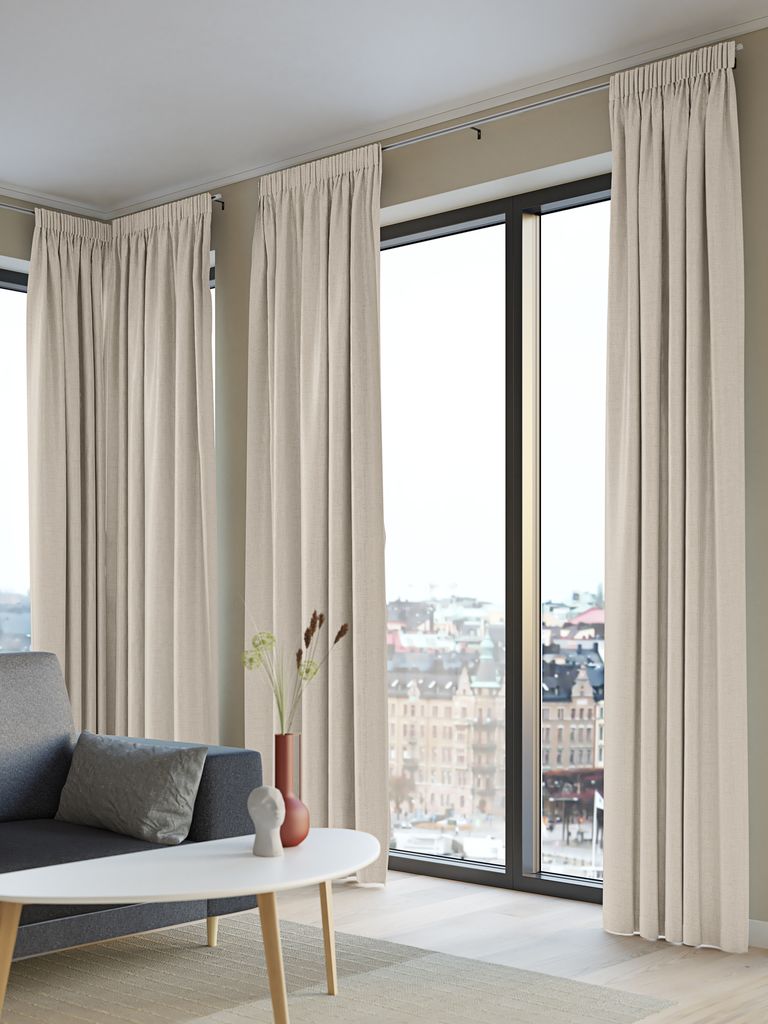 100% polyester (40% recycled). With pole pocket and curtain tape. 1 x W140 x H300 cm