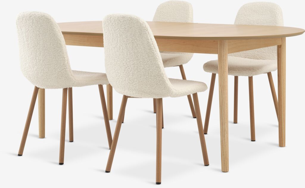 MARSTRAND + JONSTRUPMARSTRAND L200/280 table natural oak + 4 JONSTRUP teddy