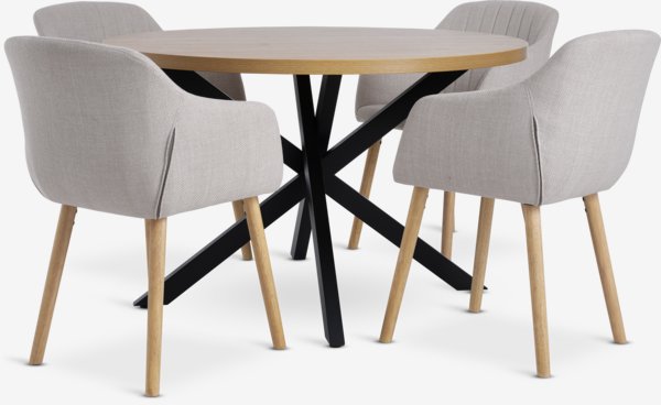 NORTOFT + ADSLEVNORTOFT D120 table warm oak + 4 ADSLEV chairs beige