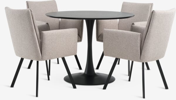 RINGSTED + GJESINGRINGSTED D100 table black + 4 GJESING beige/black