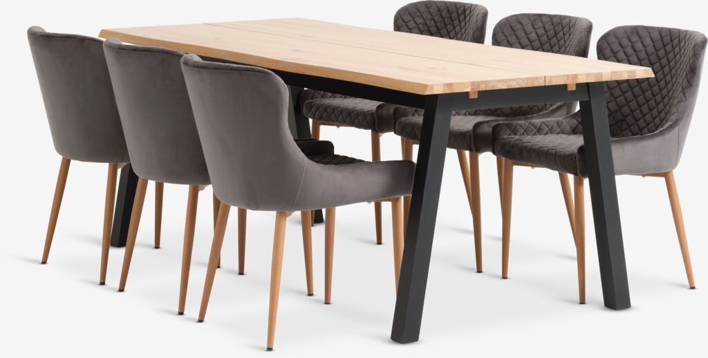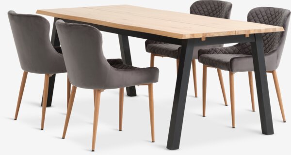 SKOVLUNDE + PEBRINGESKOVLUNDE L200 natural oak + 4 PEBRINGE grey velvet