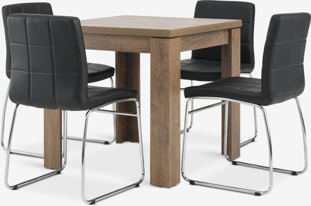 VEDDE + HAMMELVEDDE L80/160 table wild dark oak + 4 HAMMEL black