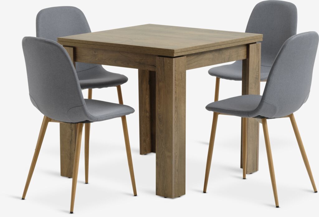VEDDE + JONSTRUPVEDDE L80/160 table wild dark oak + 4 JONSTRUP grey