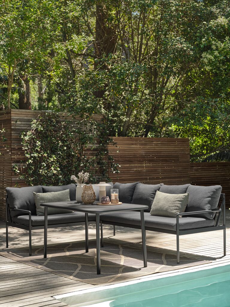 - 6-seater lounge set: 6-seater corner sofa and 1 table