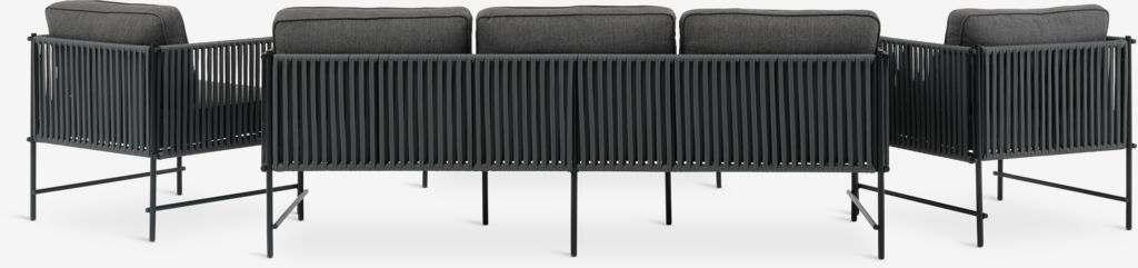 The lounge set consists of a 3-seater lounge sofa, 2 lounge chairs and 1 lounge table. The matching lounge furniture can comfortably accommodate 5 persons.