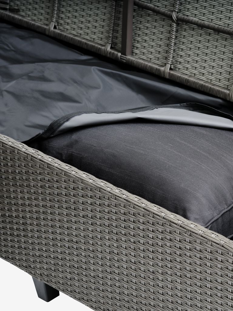The lounge sofa has a convenient built-in storage compartment located beneath the seat that includes a waterproof storage bag. It is ideal for keeping garden cushions protected when not in use or for storing other items you want to keep tidy and out of sight.