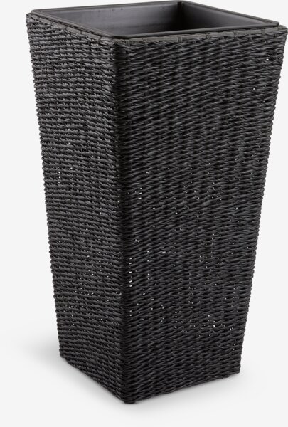 Planter basket in black polyrattan with a modern woven design. Its tall design is ideal for patios and balconies. The frostproof material makes it suitable for year-round outdoor use. A drainage hole can easily be made. W36 x L36 x H70 cm