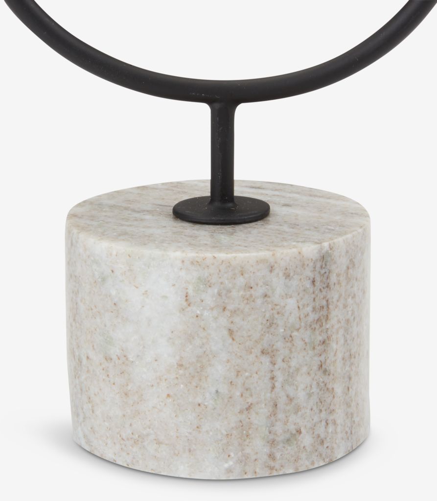 Candlestick featuring a modern, U-shaped design in black steel on a solid marble base. The contrast between the sleek metal and natural stone creates a striking decorative piece for a table setting or shelf. W15 x L7 x H33 cm