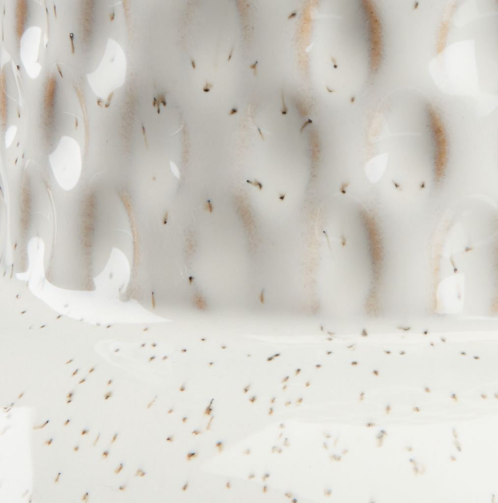 Off-white vase made of stoneware with a unique textured upper section and a smooth, speckled base. The combination of textures and the subtle off-white colour give it a contemporary yet timeless appeal, making it a versatile addition to any home decor. D15 x H18 cm