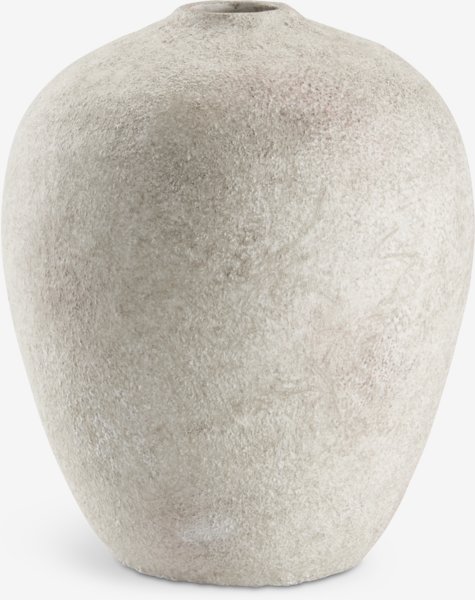 Vase in stoneware with a rustic, textured finish in natural white and grey tones. Its simple, rounded form is suitable for holding a few stems or can be used as a standalone decorative item. D17 x H21 cm