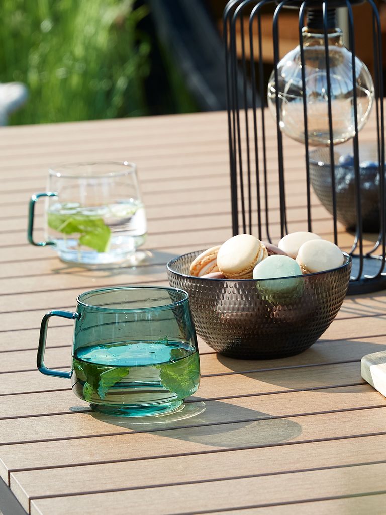 Glass mug with a minimalistic, elegant design. Available in clear or green glass. The mug is dishwasher safe. Holds 400 ml. D13 x H8 cm