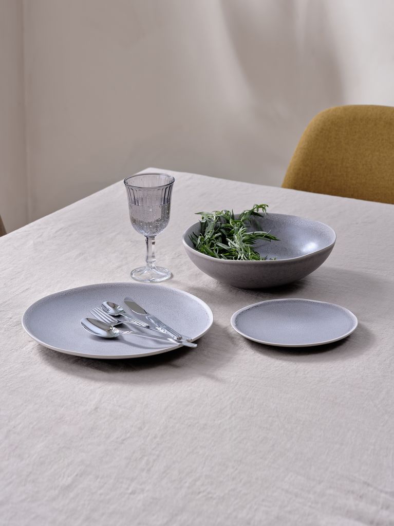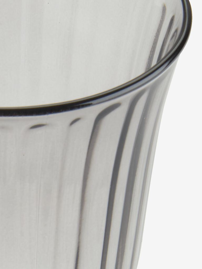 Grey wine glass with a romantic, fluted design. Holds 240 ml. Dishwasher safe. D8 x H16 cm