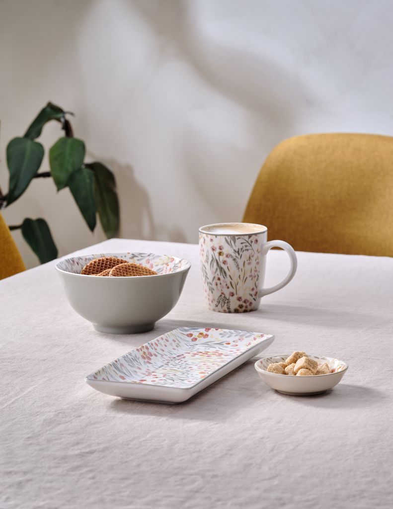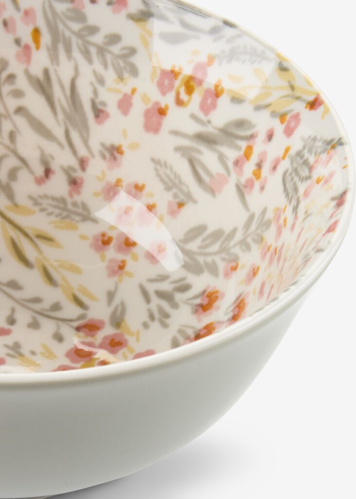 Bowl in porcelain with a charming multi-coloured floral design. Suitable for breakfast, soups or snacks. Dishwasher safe. D16 x H8 cm