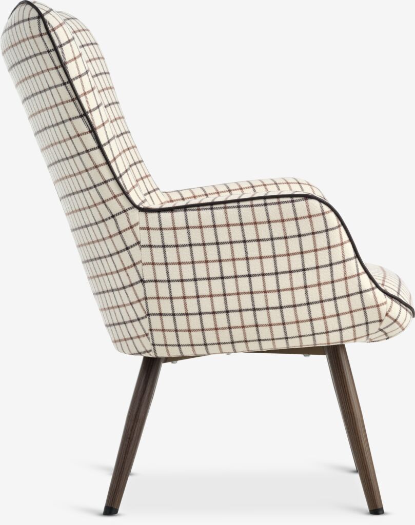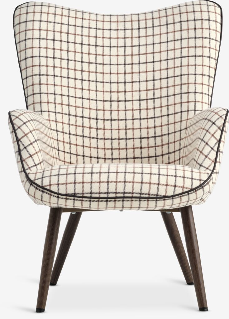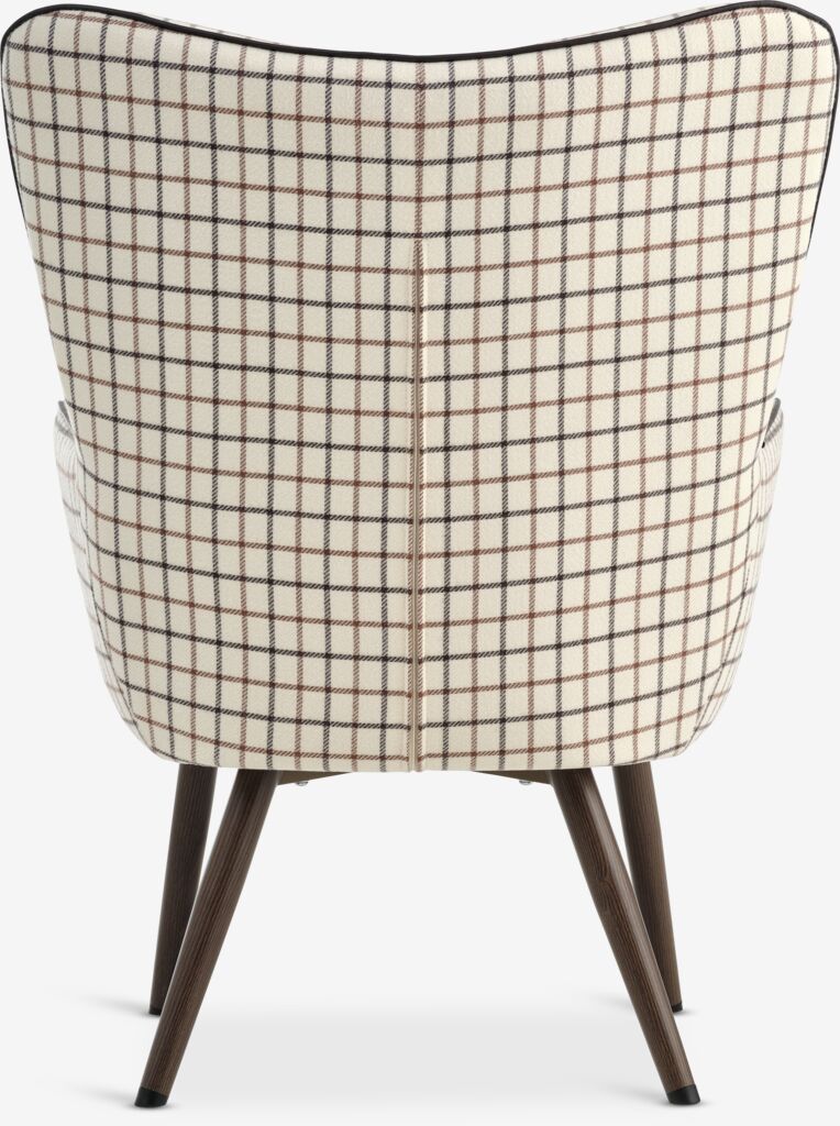 Fabric. Seat and back cushions in foam. Legs in steel. W72 x H98 x D80 cm
