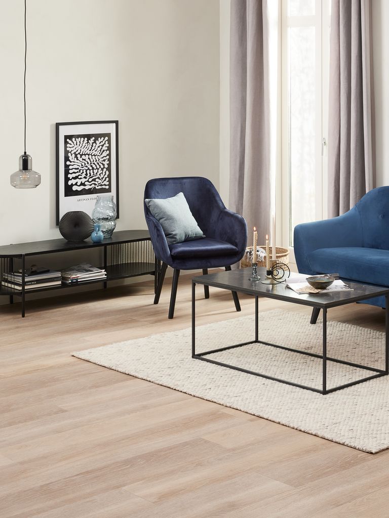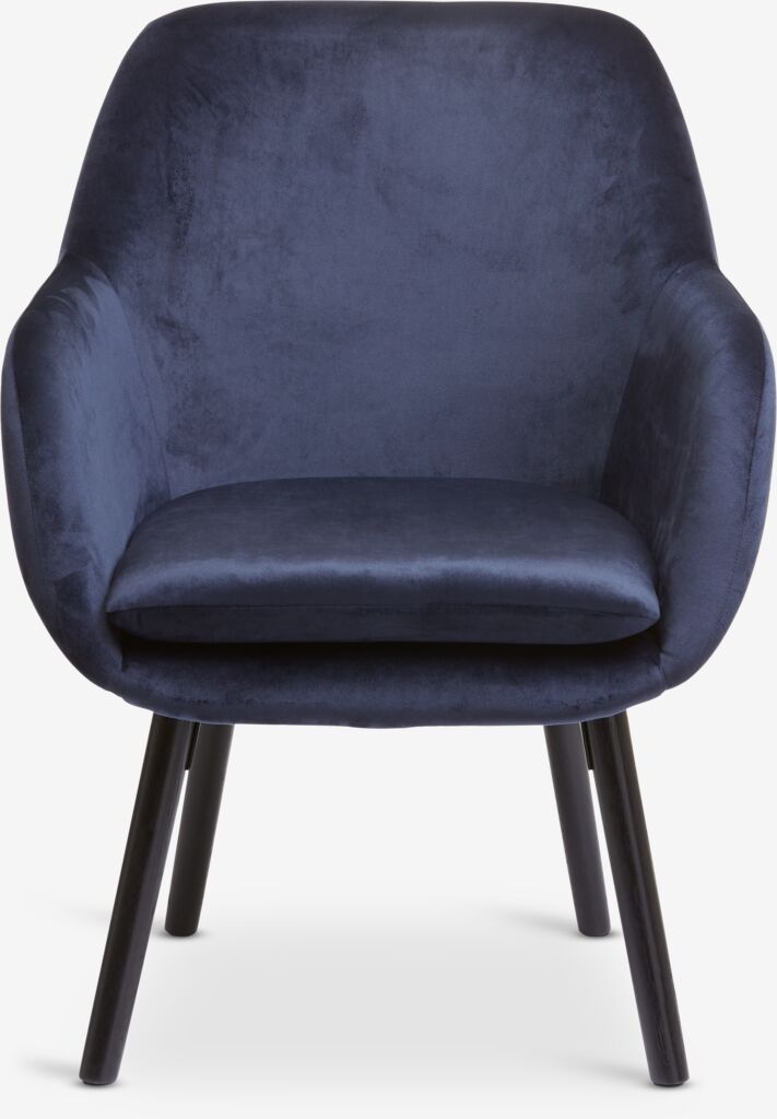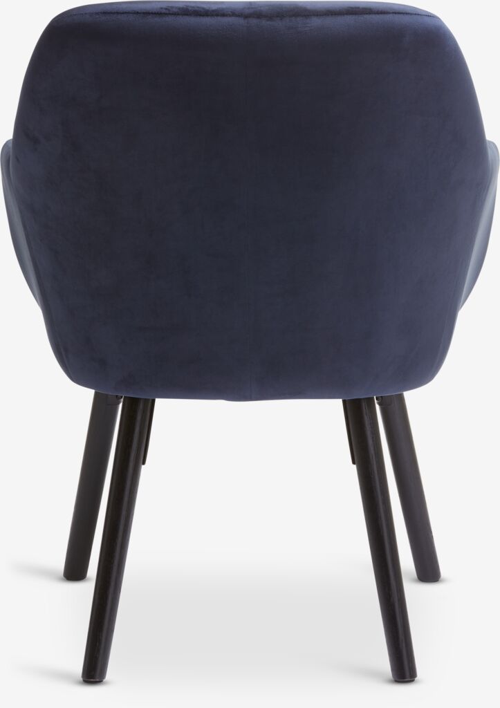 Velvet fabric. Seat and back cushions in foam. Legs in solid oak. W66 x H84 x D68 cm