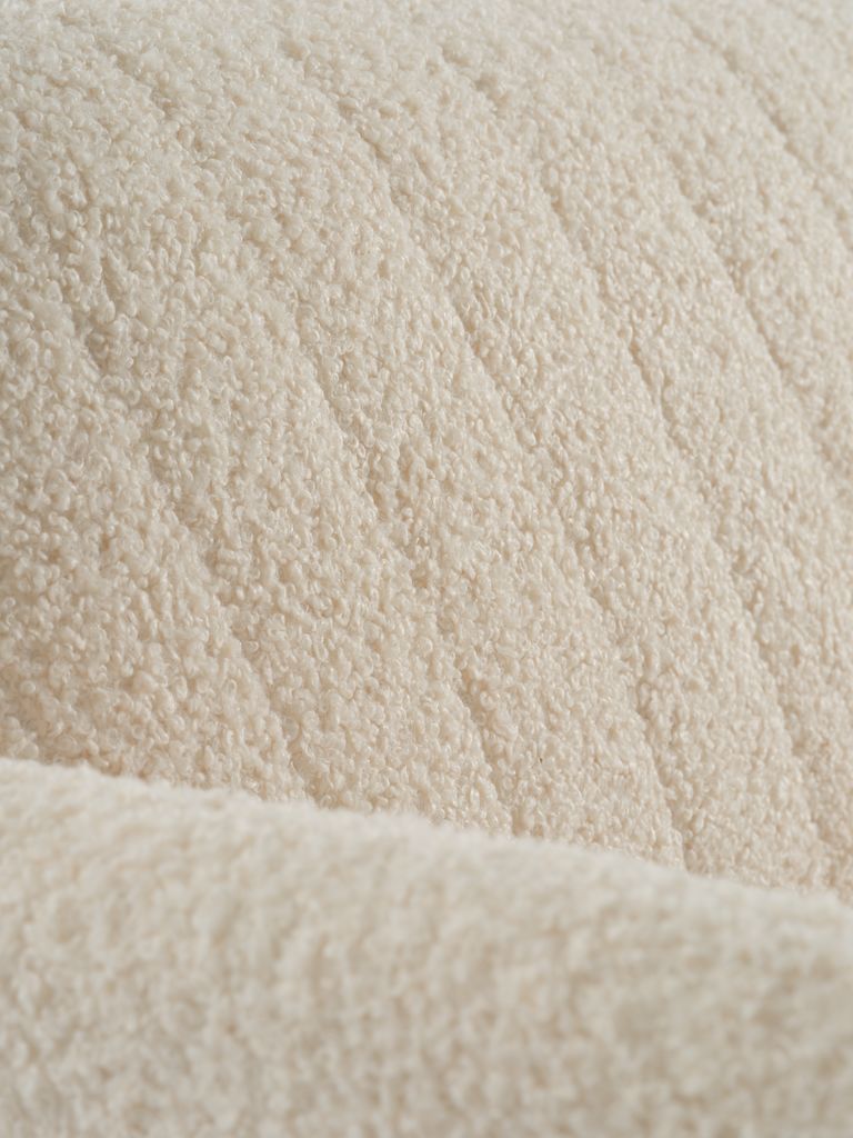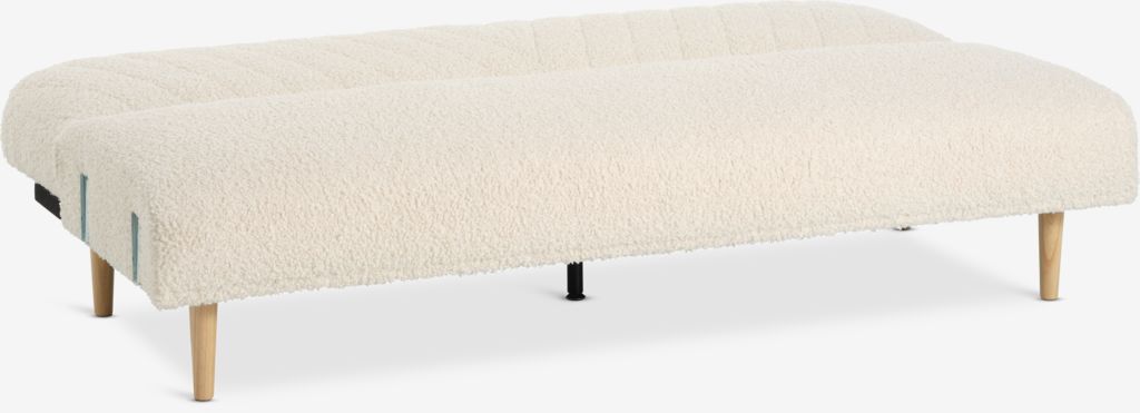 3-seater sofa in teddy fabric. Seat and back cushions in foam. Legs in solid wood. Sleeping area 106x190 cm. W209 x H82 x D83 cm
