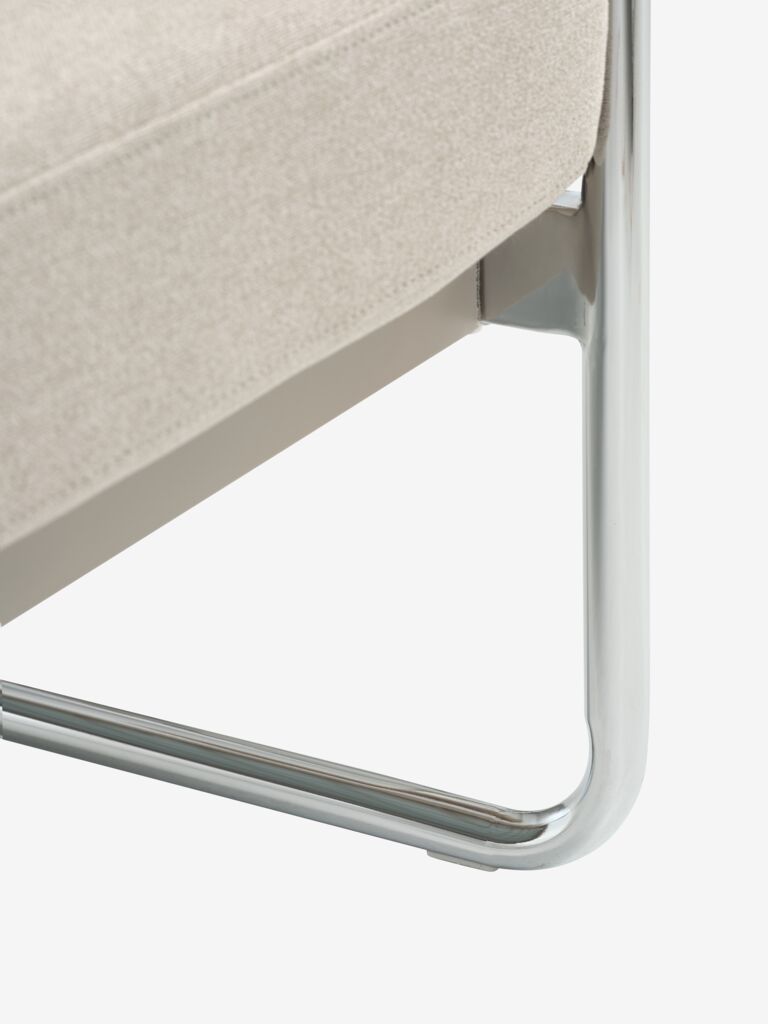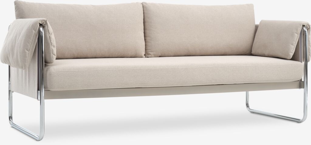 3-seater sofa in fabric. Seat cushion with pocket springs and foam padding. Back cushion in foam. Incl. padded cushions for the armrests. Legs in chrome. W180 x H70 x D75 cm