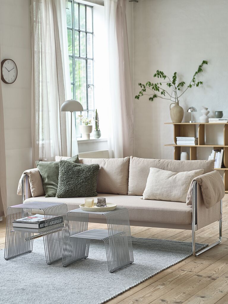 HEDEHUSENESofa HEDEHUSENE 3 seater beige fabric/chrome