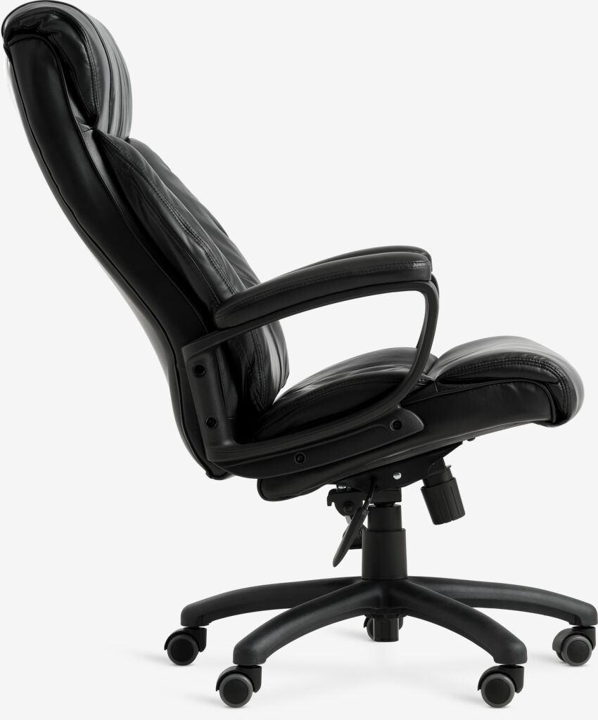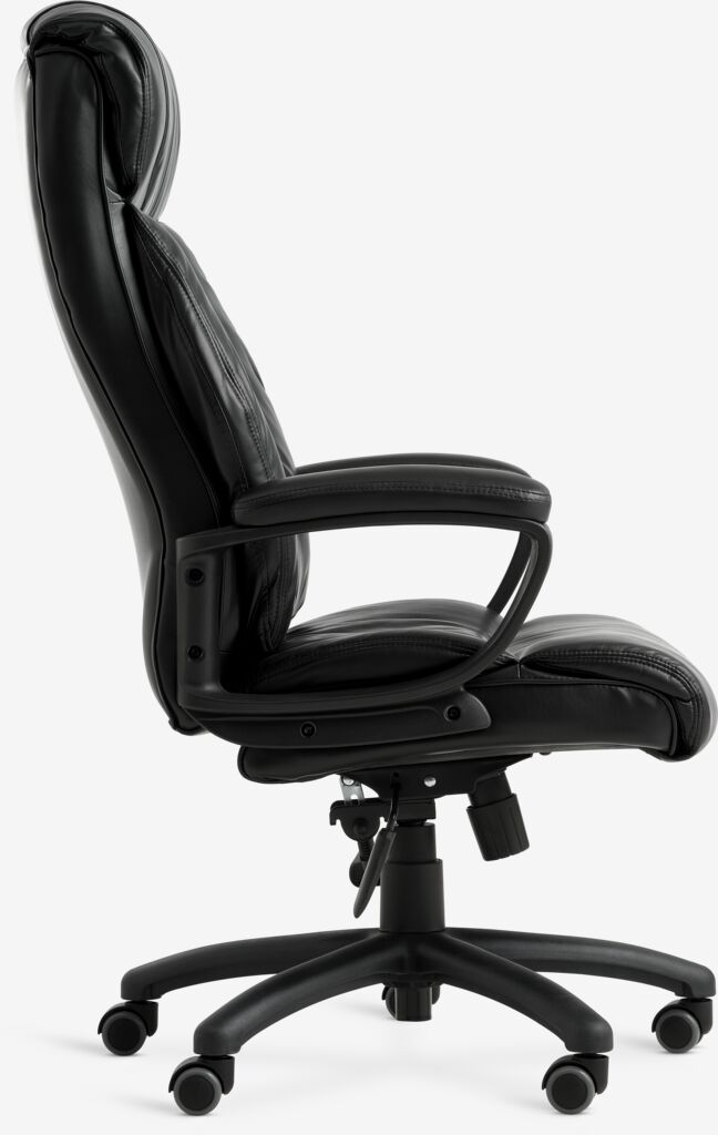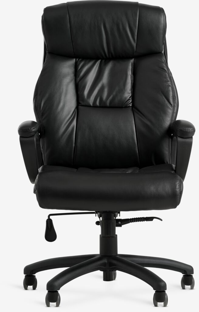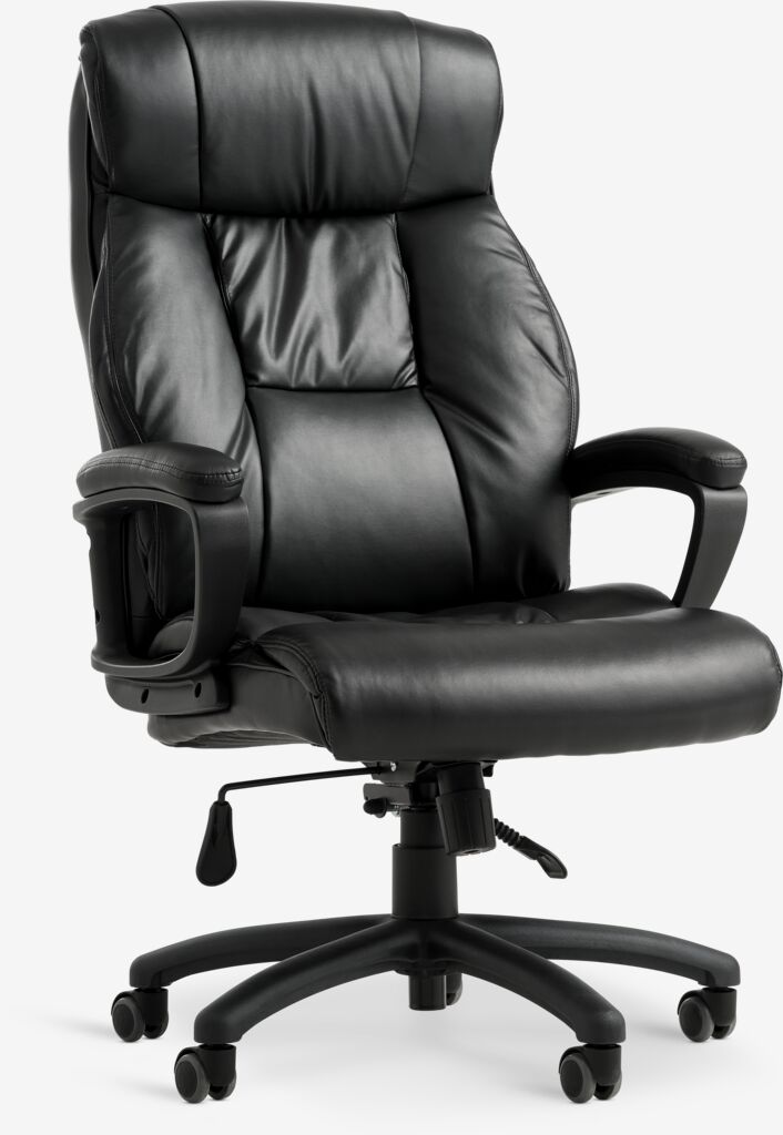 TJELE office chair gives you reliable comfort and support during your workday. An office chair is an adjustable, supportive chair that helps keep you comfortable during long work hours, ideal use as a computer chair. With armrests and features like tilt lock in different positions, this chair supports good posture so you can sit comfortably for hours. The chair is covered in black faux leather. W68 x H115-125 x D77 cm
